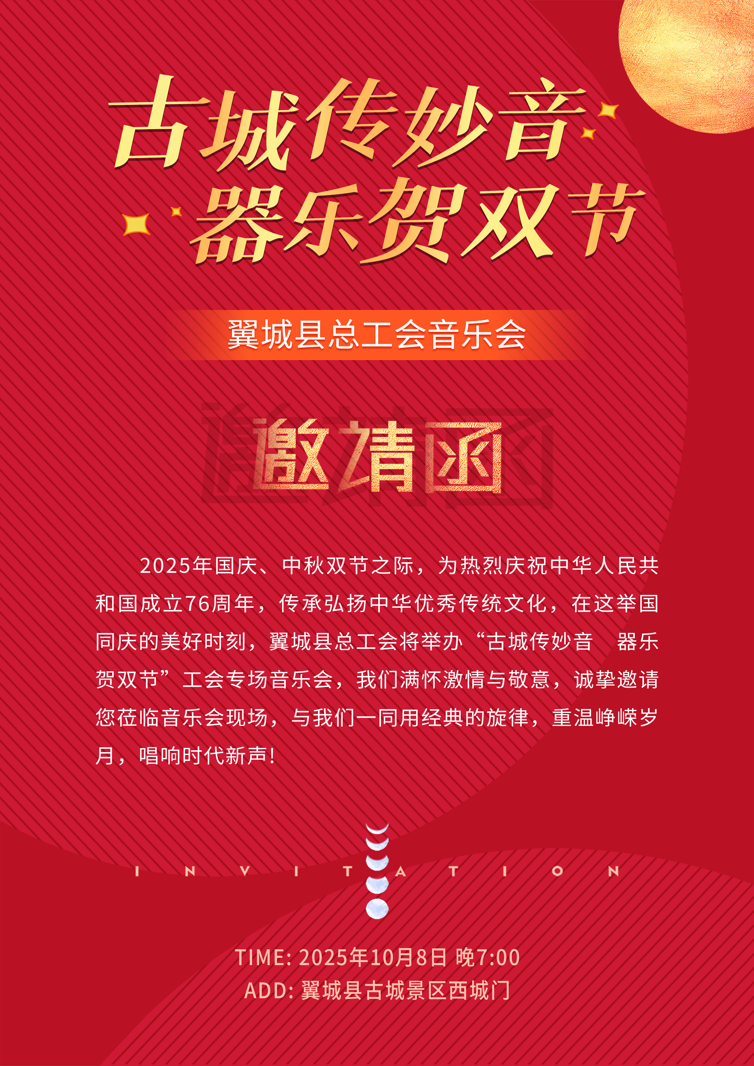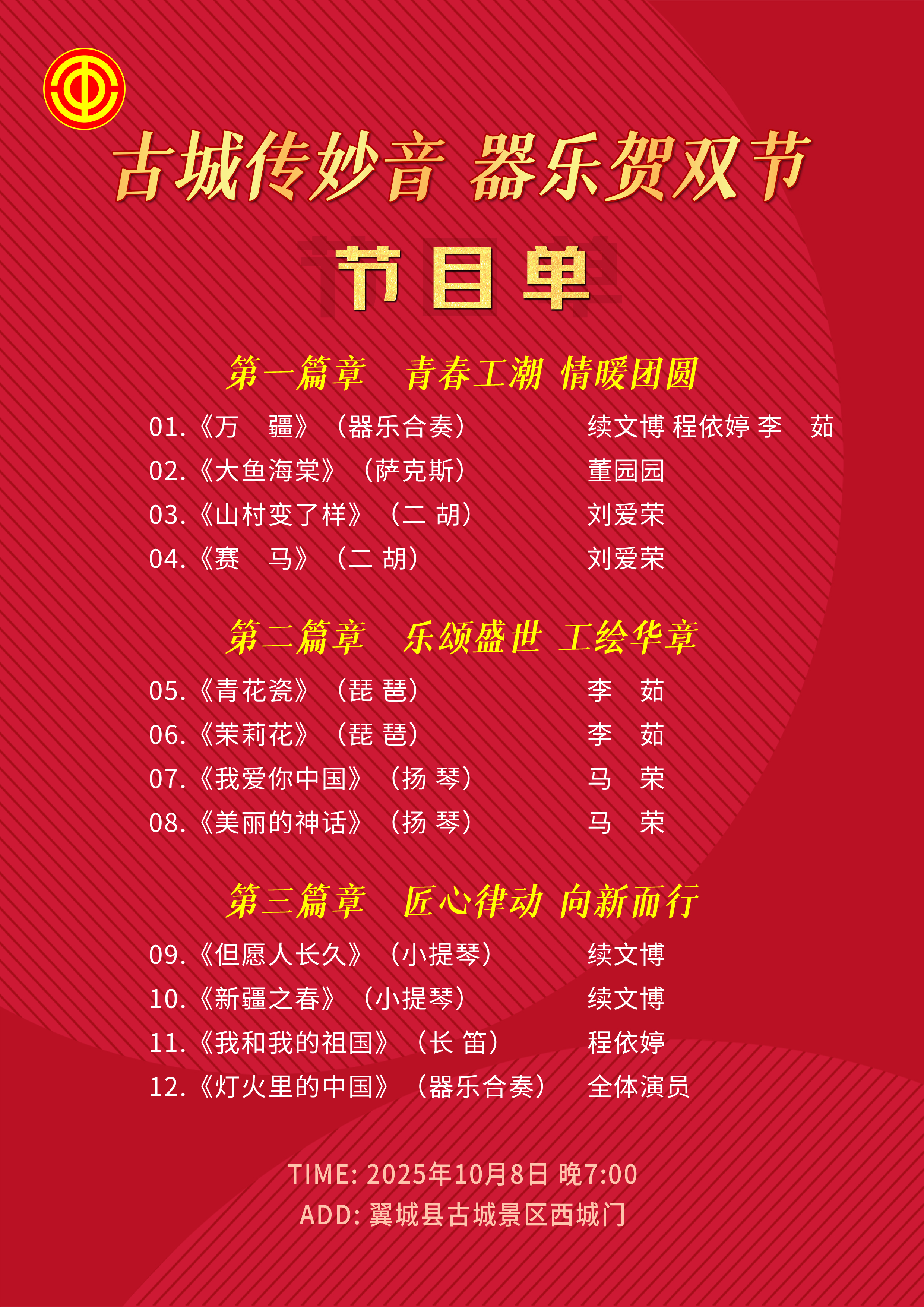 翼城县总工会“古城传妙音 器乐贺双节”专场音乐会,诚邀您莅临!